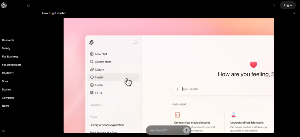 Setelah mendapatkan akses, pengguna dapat memilih menu Health di sidebar ChatGPT dan mulai menghubungkan data kesehatan, mengunggah dokumen medis, serta berdiskusi seputar kondisi kesehatan mereka dengan konteks yang lebih relevan dan personal.